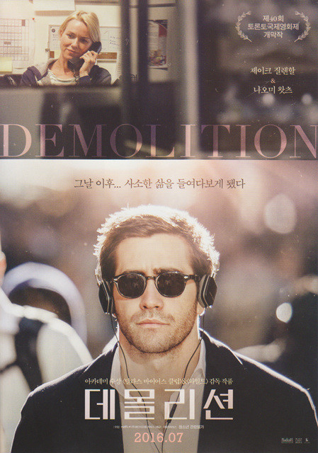 [데몰리션]은 모든 사람을 만족시키는 영화가 아닙니다. 목표와 의미를 끝까지 알려주지 않는 전개, 이해할 수 없는 등장인물들의 행동과 감정들은 관객들에게 질문을 할 뿐, 답을 하지 않고 있기 때문입니다. 저는 이 영화를 5번을 봤습니다. 시청할 때 마다 새로운 감정을 느끼게 해 주었습니다. 당황, 감동, 기괴, 공감, 회복을 겪으며 힘든 시기를 겪을 때마다 보게 되는 영화인 것 같습니다. 아무리 힘들어도 결국 내가 파괴를 해야 하고 내가 재건축을 해야 하는 이 모순적인 감정들을 어떻게 바라봐야 하는지 무엇을 소중하게 생각해야 하는지 많은 것을 느끼게 해 줍니다. 5번이나 봤지만 아직도 이 영화를 정리하라고 하면 어렵다고 느낄 만큼 많은 생각을 하게 만듭니다.